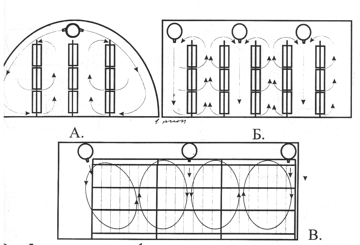 Если проход уже, то подсыхают нижние ряды, если коридор шире, образовываются завихрения в проходе.