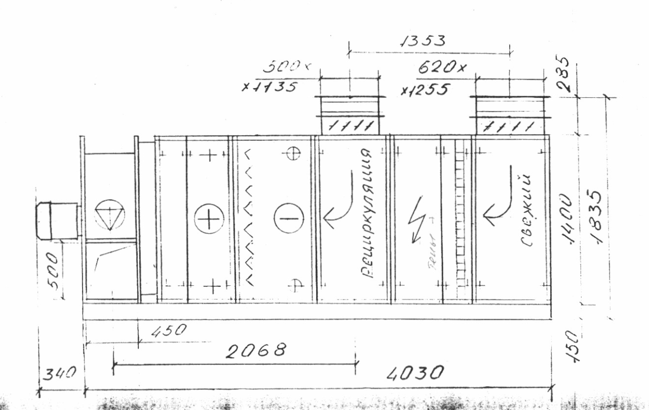 Площадь сечения перекрытия воздуховода свежего воздуха должна всегда равняться открытой площади сечения воздуховода рециркуляции.